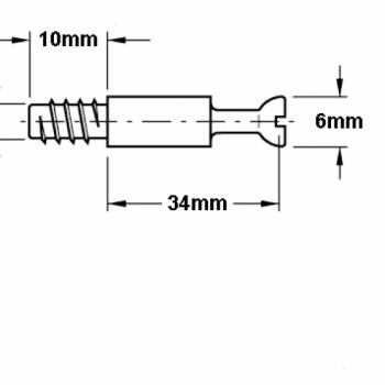 Assembly tip: This 34mm cam bolt dowel fixing has a M6, 12mm length machine thread and the 34mm cam bolt dowel fitting is screwed into either a plastic or metal pre-inserted nut. For 34mm Cam bolt dowel spare parts that just screw into chip board or wood without pre-inserted nuts, please see our 34mm cam bolt dowel fixings without the term machine thread in its description.