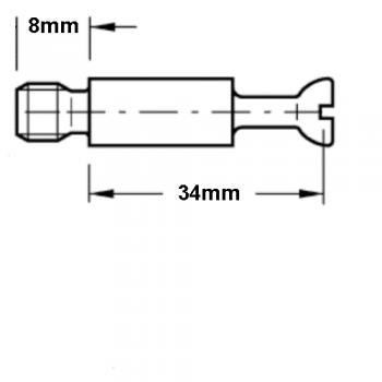 This 34mm cam bolt dowel fixing has a M4, 8mm length machine thread and the 34mm cam bolt dowel fitting is screwed into either a plastic or metal pre-inserted nut. For 34mm Cam bolt dowel spare parts that just screw into chip board or wood without pre-inserted nuts, please see our 24mm cam bolt dowel fixings without the term machine thread in its description.